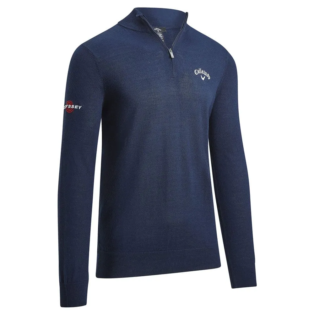 The Callaway Blended Merino 1/4 Zip Golf Sweater is the perfect layering garment, with a soft feel and thermal properties it can be worn over a polo shirt on those cooler summer days or as an intermediate layer under a waterproof jacket on those cold winter days. Designed for golf but also entirely suitable to wear off the course, this soft, stretchy and lightweight garment allows complete freedom of movement so that even though you’re adding an extra layer you won’t feel restricted in any way. Constructed with merino wool blended with acrylic, this sweater has the luxury feel and look of a wool garment but without the high maintenance that they can bring. Merino wool is breathable and moisture wicking so it will move moisture away from the body to the surface of the fabric where it can evaporate so you feel dry and comfortable and its natural odour-resistant properties means you can play with confidence all day long.