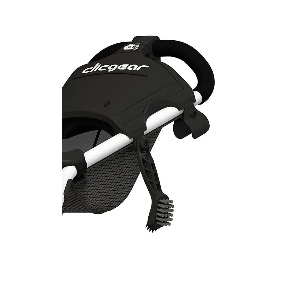 The Clicgear® Club Brush is an easy way to keep your club face clean. Designed to fit onto your trolley using the the Clicgear accessory tab (included), the Club Brush provides easy access to a tool with multiple uses and functions. It has strong bristles for cleaning grooves and shoes and seven groove cleaning spikes for getting just about any groove clean. The Club Brush will fit all Clicgear trollies and other brands which have 1″ tubing.