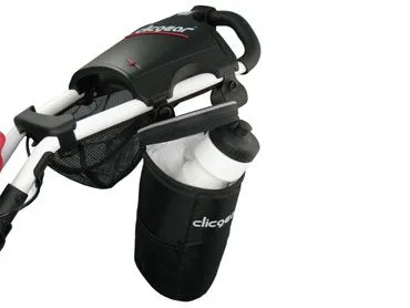 Made from waterproof nylon, it is insulated and lined to keep your drinks colder. Easily holds two 12 oz. beverage cans, or one 20 oz. sport drink, or a 32 oz. water bottle. Interior dimensions are approximately 4.5″ in diameter and 10″ high. Fits all Clicgear® and Rovic® Brand Carts and will also fit other brand name push carts with 1″ tubing. This accessory comes with (1) Clicgear Accessory Tab Mount for easy mounting.