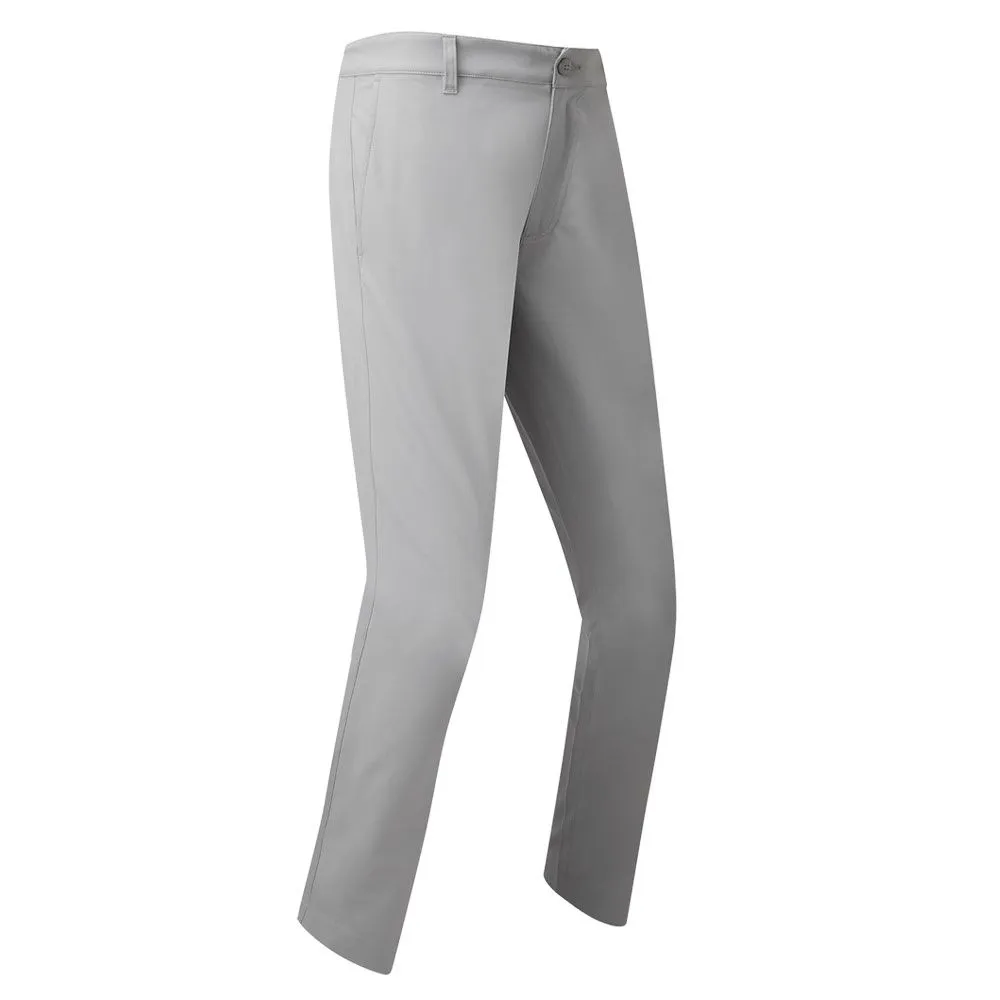 The FootJoy Par Golf Trousers are made from a woven stretch twill polyester fabric with a modern, tapered fit cut. The lightweight fabric is highly breathable and a rubber FJ gripper inside the waistband prevents shirts from riding up during play. There are two side entry pockets and two single welted rear pockets and the fabric is easy to care for and maintain.