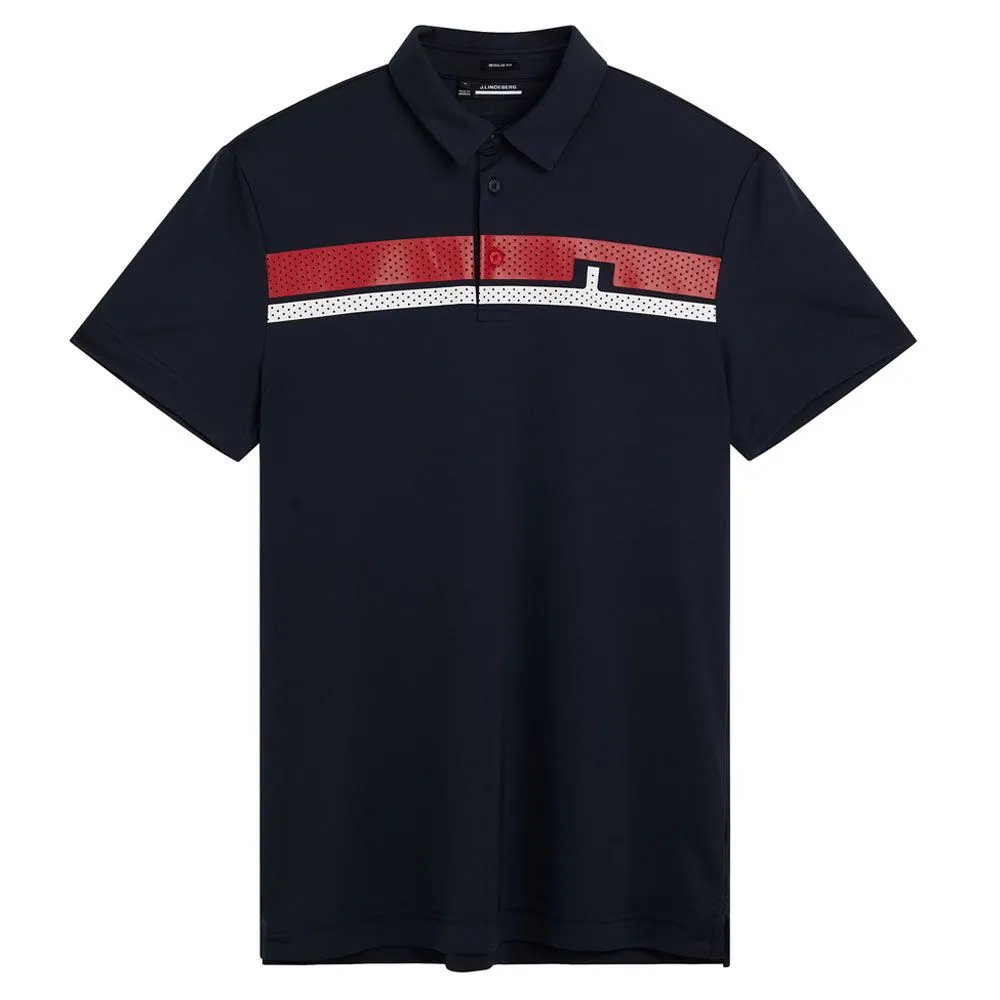 The J.Lindeberg Clark Golf Polo Shirt features moisture transportation properties and 4-way stretch for maximum comfort on the course. This style is made in J.Lindeberg’s most popular jersey fabric TX Jersey. Moisture transportation properties move moisture away from the skin to keep you feeling dry and comfortable and 4-way stretch allows freedom of movement throughout your game. This regular-fit shirt has a self-fabric collar, 3 button placket and a JL branded rubber print at the chest adds the finishing touch.