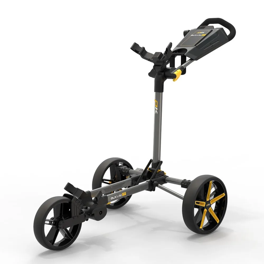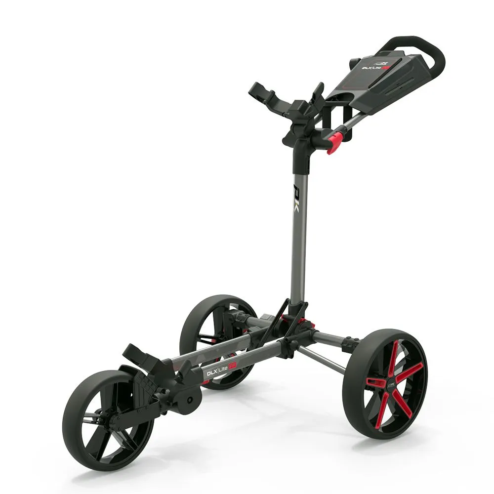 The all-new DLX-Lite FF Push Cart has been cleverly designed with optimum storage in mind. The simple folding and unfolding system allow it to be folded down flat to give slimline compact storage. The innovative flat fold design provides unique options for the storage and transportation of your golfing gear.