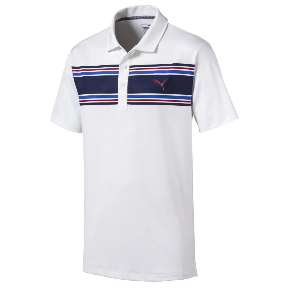 The Montauk is a classic polo shirt with a cool graphic stripe pattern on the chest. It has a 3-button placket and self-fabric collar and a Puma Cat logo on the left sleeve adds the finishing touch. Puma believes the game of golf should be colourful, innovative, stylish and fun. With everything they do and every product they create, their goal is to bring enjoyment to golfers everywhere.